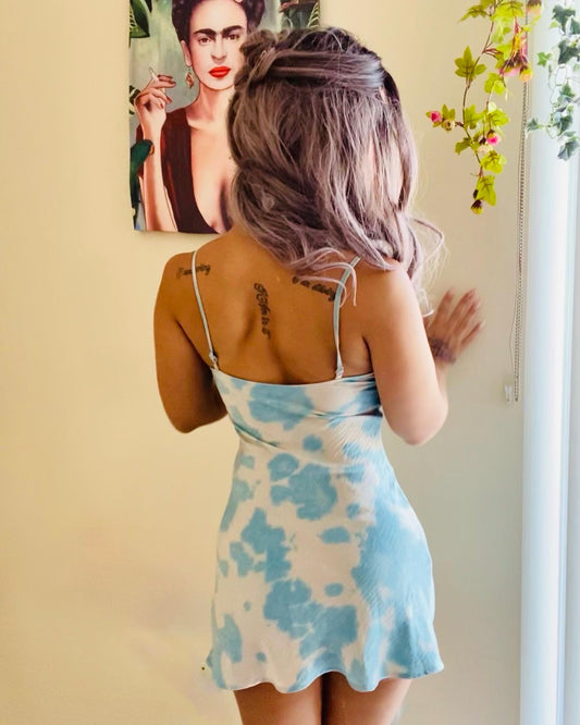 50% OFF Blue Skies Tie Dye Satin Slipdress - Sky Blue/Beige