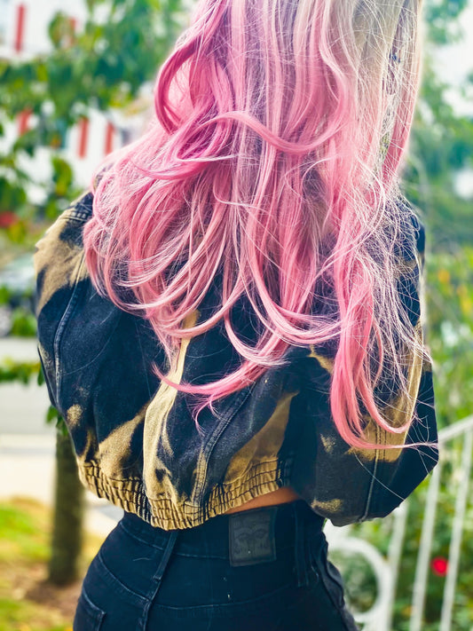 Maya Black and Tan Dyed Comfy Denim Jacket with Elastic Waistband