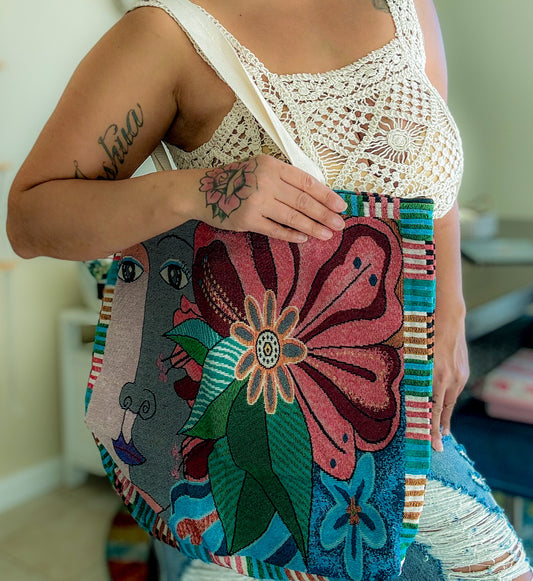 Boho Art Woven Oversize Shopper Tote Bag NEW
