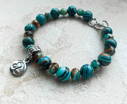 Leo Zodiac Semiprecious Rhodium Plated Charm Bracelet with Birthstone