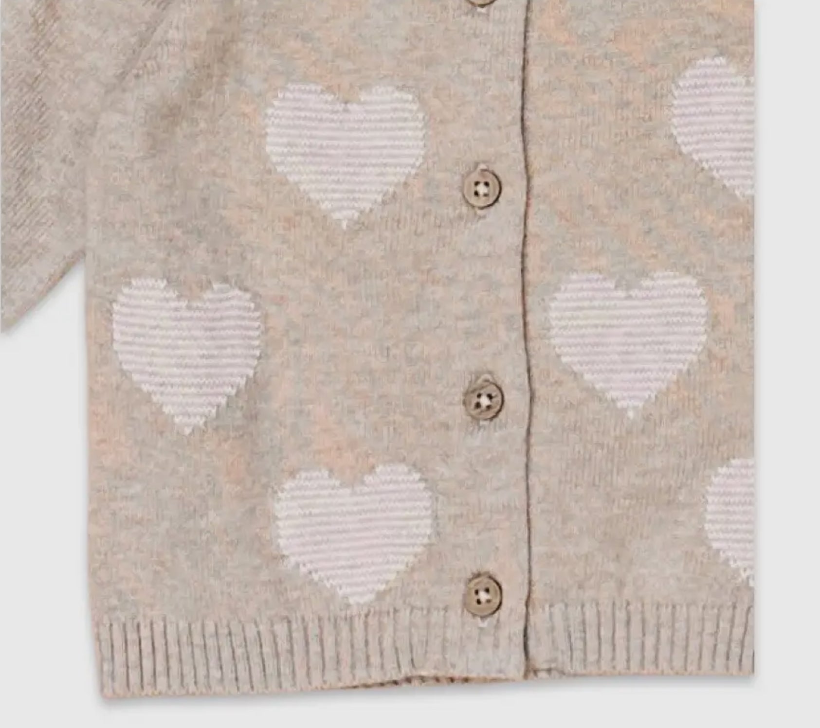 Hearts Jacquard Knit Baby Cardigan Organic Cotton - Tan/Blush