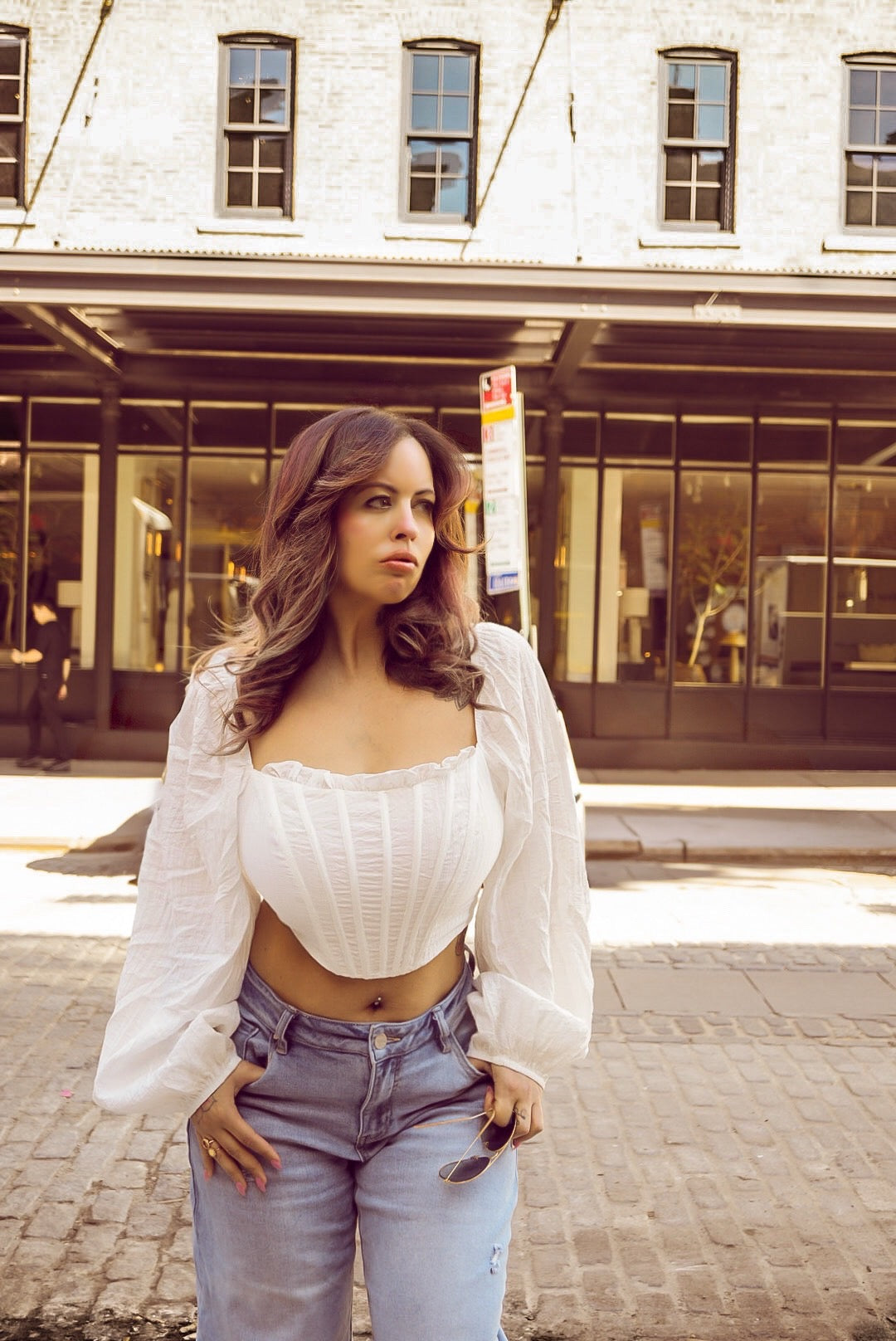 Eighth Wonder White Puff Sleeve Corset Blouse NEW